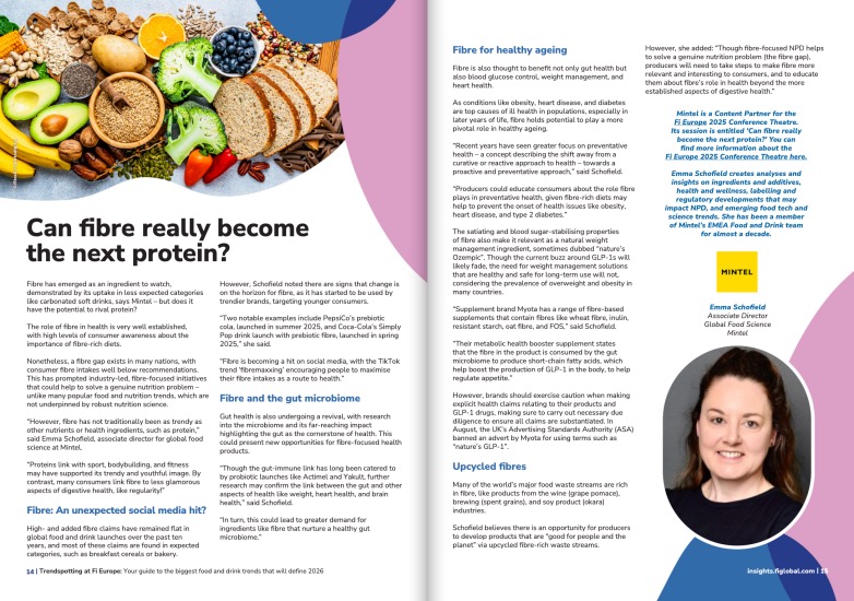 The Fi Europe Trend Guide 2026 positions dietary fibre as the next major nutrient, comparable to protein, and highlights its essential role in weight management and healthy aging.